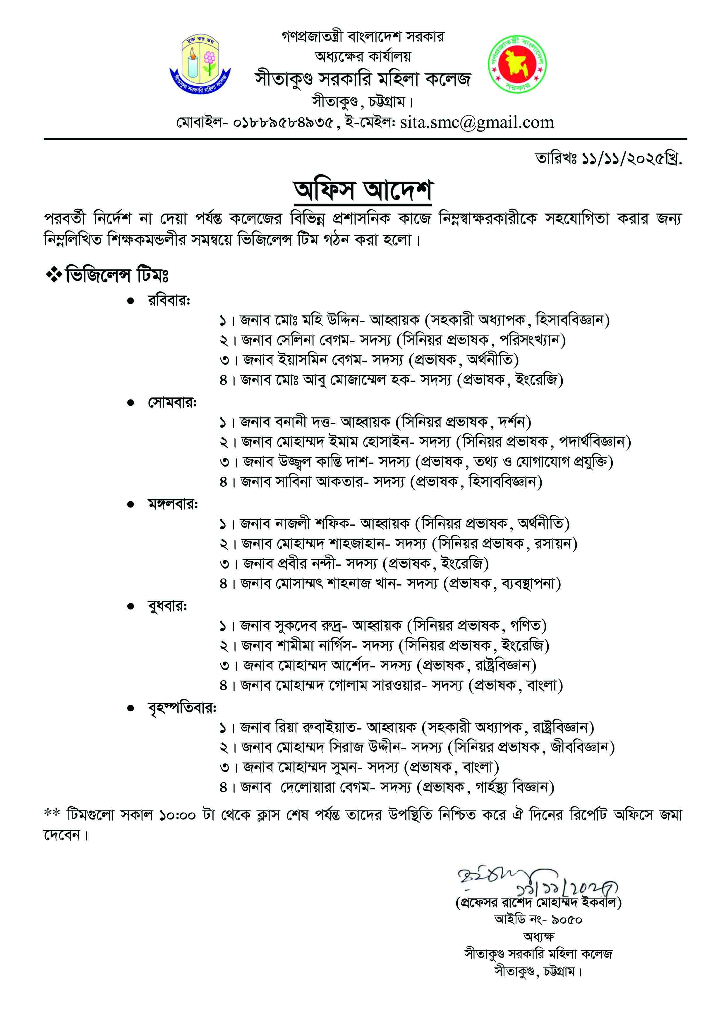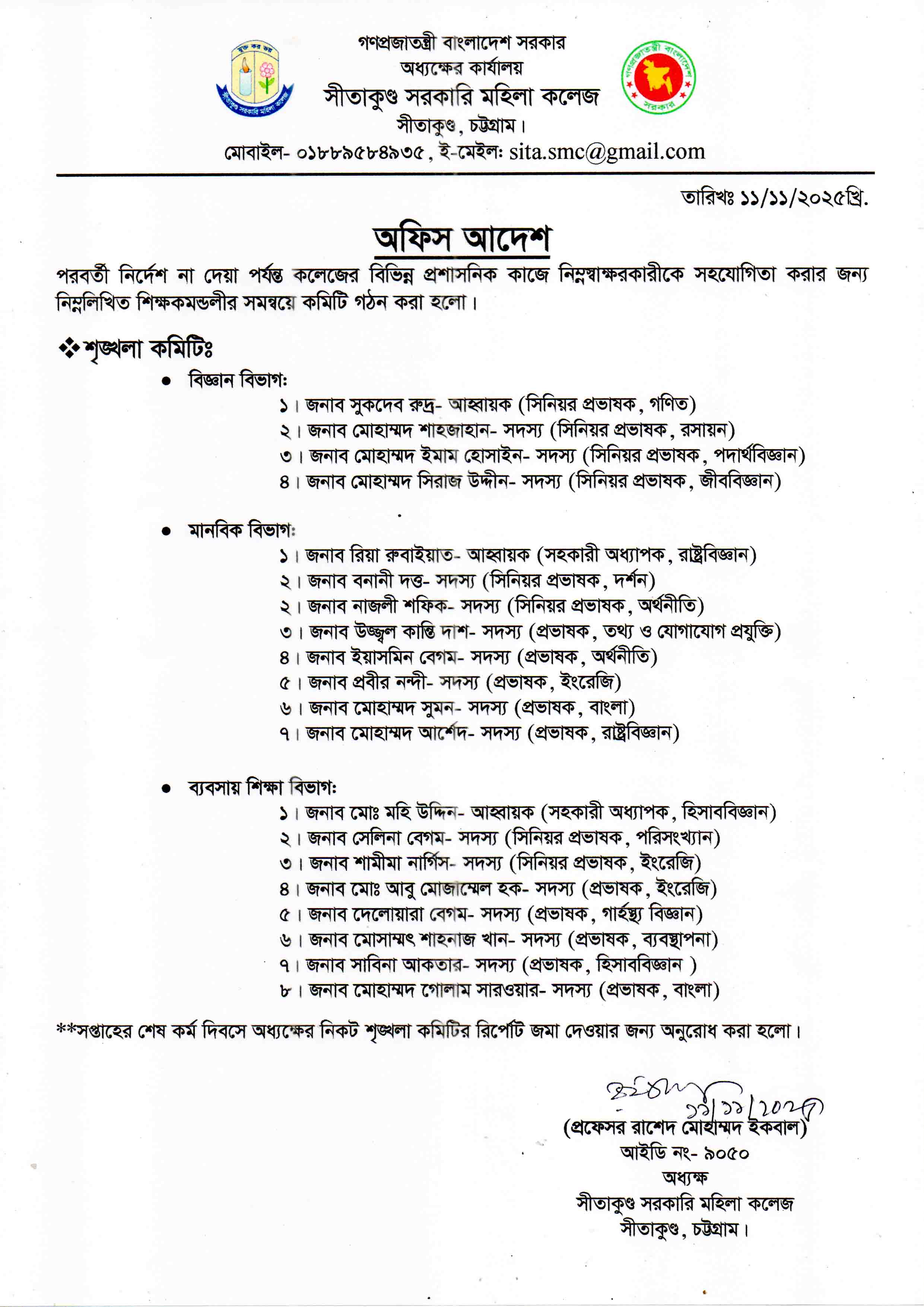 সীতাকুন্ড সরকারী মহিলা কলেজে জাতীয় শিক্ষক দিবস উদযাপন ২০২৪