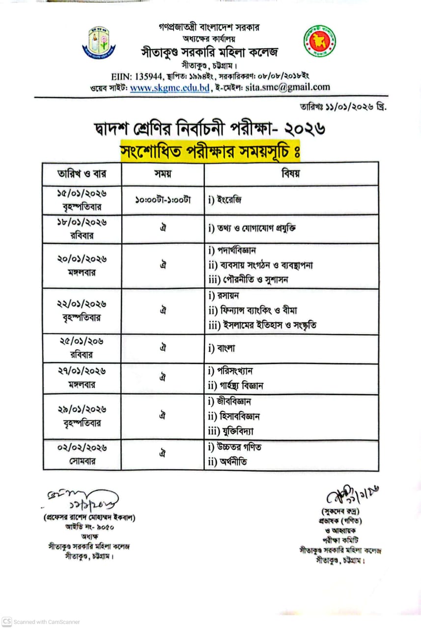 দ্বাদশ শ্রেণির নির্বাচনী পরীক্ষার সংশোধিত সময়সূচি: