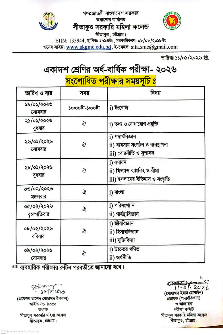 একাদশ শ্রেণির অর্ধ-বার্ষিক পরীক্ষার সংশোধিত সময়সূচি: