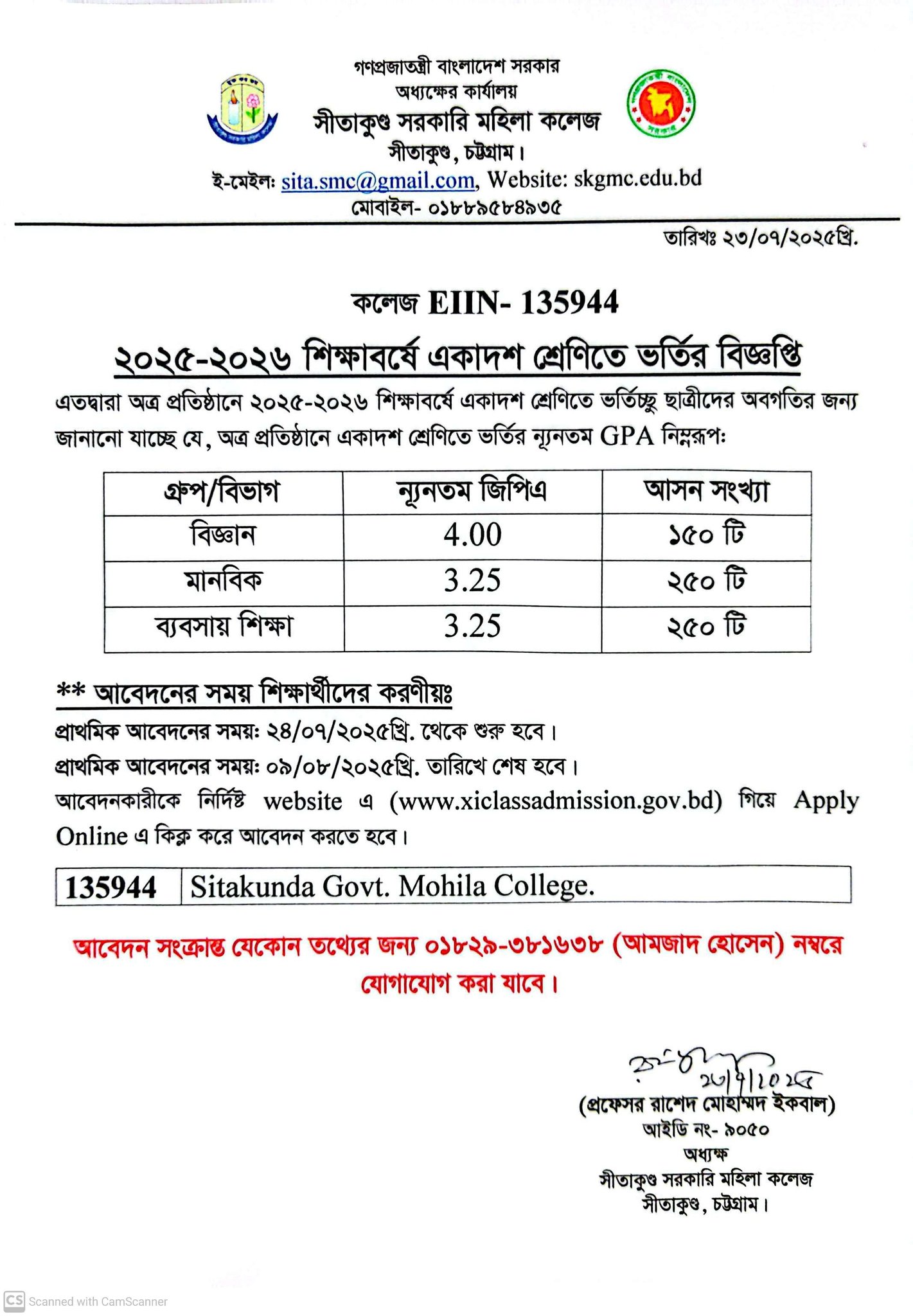 41| ২০২৫-২০২৬ শিক্ষাবর্ষের একাদশ শ্রেণিতে ভর্তি সংক্রান্ত বিজ্ঞপ্তি