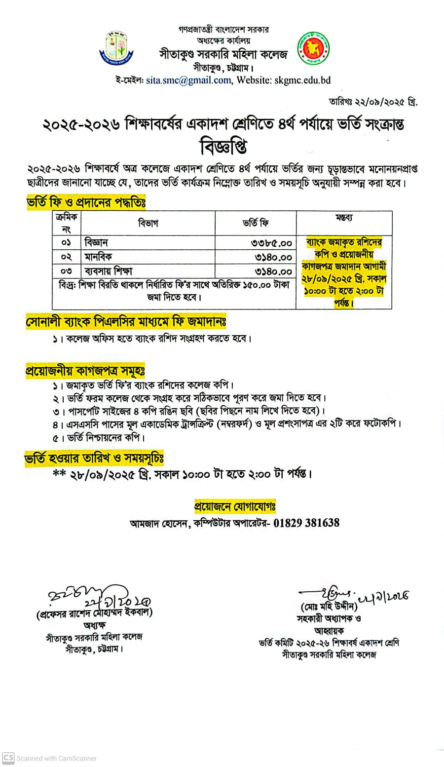 43| ২০২৫-২০২৬ শিক্ষাবর্ষের একাদশ শ্রেণিতে ৪র্থ পর্যায়ে ভর্তি সংক্রান্ত বিজ্ঞপ্তি
